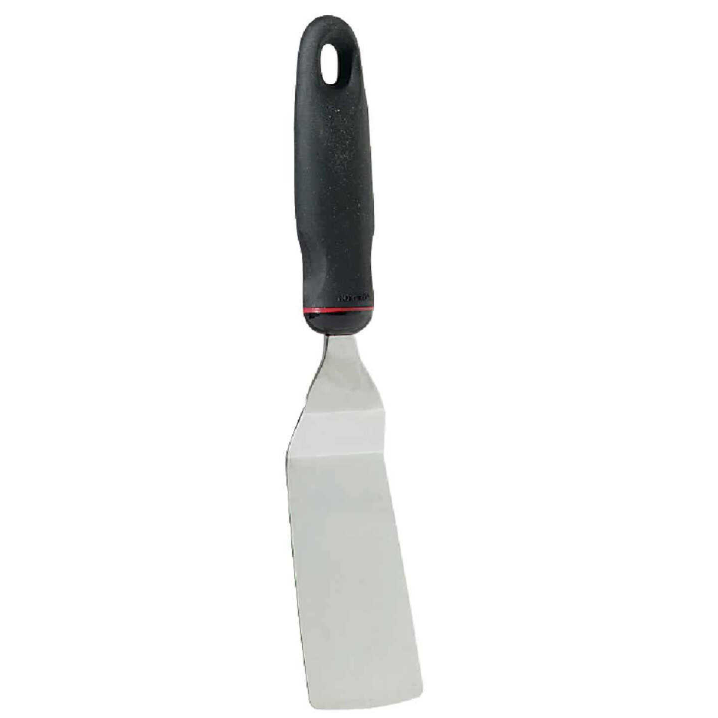 Stainless steel turner adds comfort and ease to cooking. The Grip-EZ soft rubber handle allows for a stronger grip, prevents cramping and hand fatigue. This nonslip, ergonomic grip is dishwasher safe and is designed for right or left hand use. Carded.