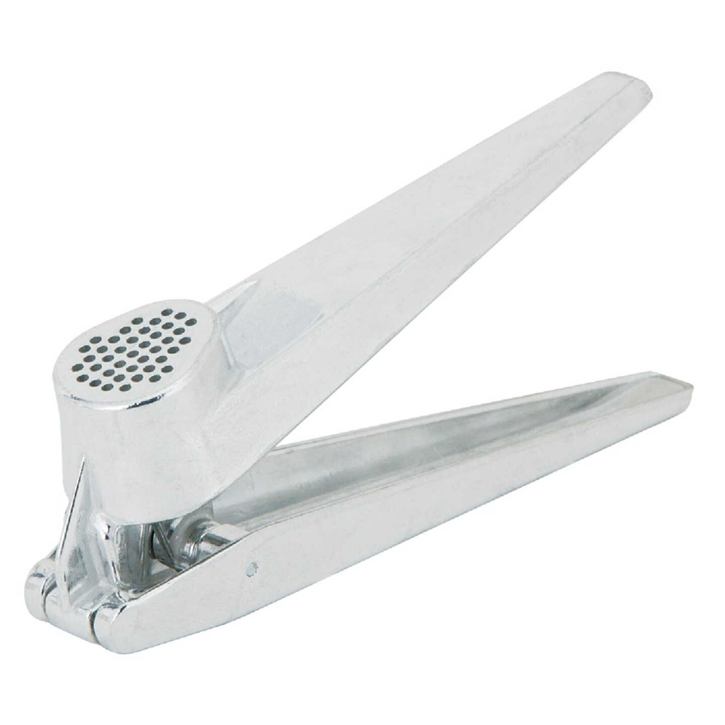 Strong heavy-duty aluminum garlic press keeps hands smelling fresh. No need to peel garlic. Cleaner included.